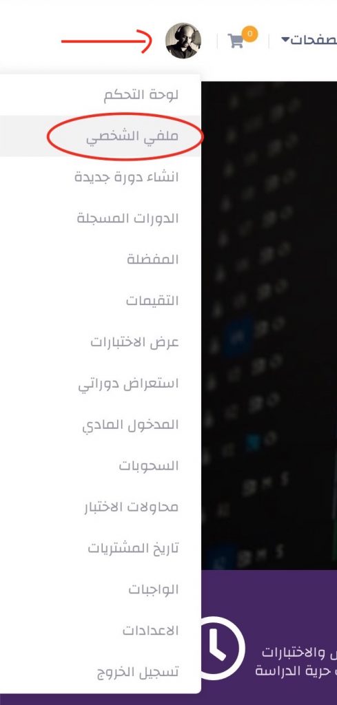 لتحرير ملف التعريف الخاص بك ، بما في ذلك صورتك الشخصية ، قم بالنقر على الأيقونة الخاصة بك في أعلى يسار الصفحة وقم باختيار ملفي الشخصي في القائمة المنسدلة كما هو مبين في الصورة أدناه.